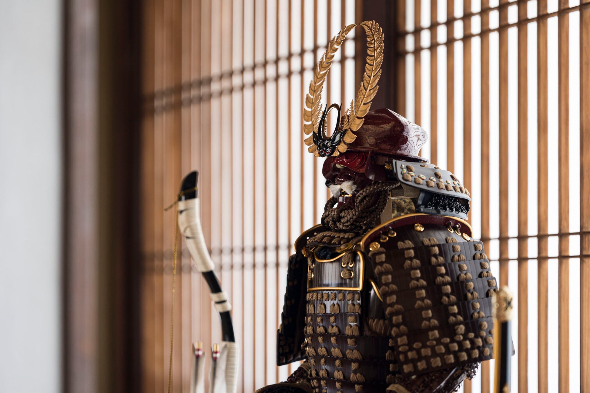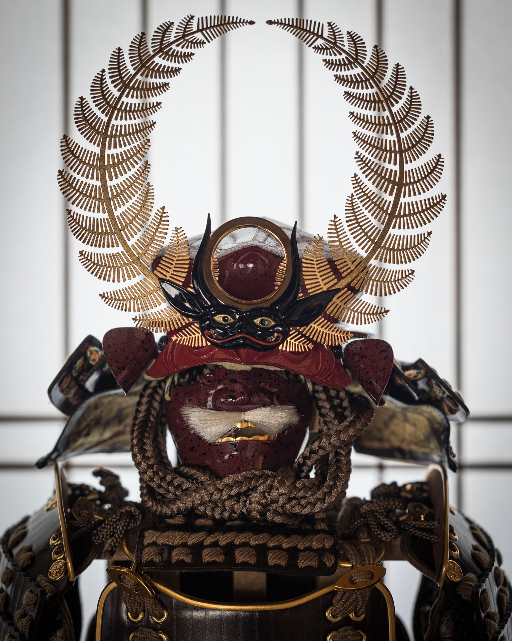A sculptural reproduction of the armour associated with Tokugawa Ieyasu, the statesman who brought an end to Japan’s age of civil war and established over 260 years of peace during the Edo period.